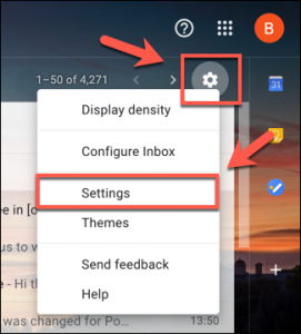 Adım 1: Tercih ettiğiniz web tarayıcınıza giriş yapın ve Gmail’i açarak e posta listenizdeki sağ üst köşede bulunan “Ayarlar Dişli” simgesine tıklayabilirsiniz.