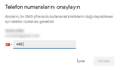 6 Ayarları tamamladıktan sonra göndermek istediğiniz mail içeriğini girin ve gönder sekmesine tıklayın. Telefon numarası onay ekranı açılacaktır. Buradan gönderdiğiniz e-postayı açmasını istediğiniz kişinin telefon numarasını girmelisiniz.
