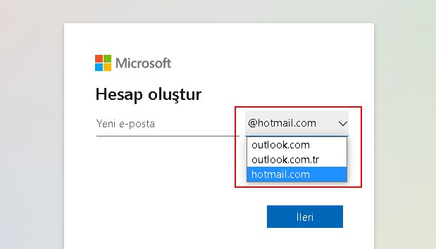 Adım 4: Mail adreslerinden istediğinizi seçin. (Outlook, Hotmail)
