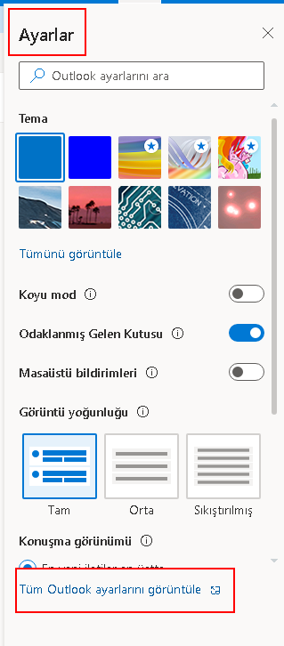 1. Outlook mail hesabınıza giriş yapın ve posta ana sayfasına gidin. Sağ üstte bulunan ayarlar kısmından tüm outlook ayarlarını görüntüle kısmına tıklayın.