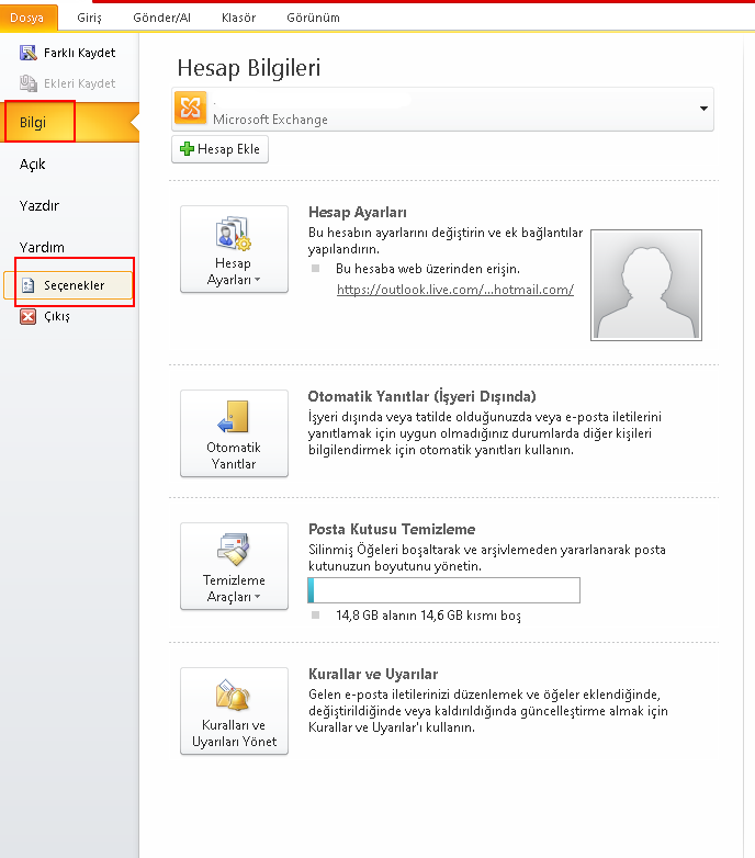 1.Outlook uygulamasını açın. Sol menüden dosya kısmına tıklayın. Açılan ekrandan seçenekler sekmesine tıklayın.